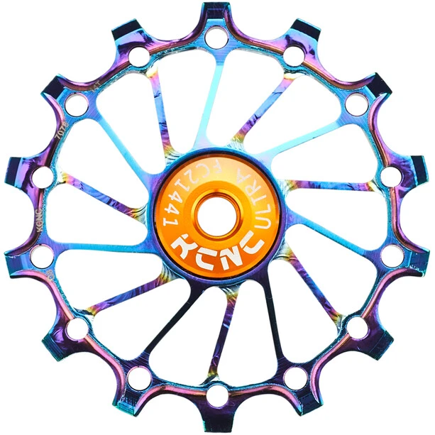 Les rouleaux de changement de vitesse Jockey wheel Narrow wide de KCNC sont fabriqués en AL7075 usiné CNC et un roulement en acier. Grâce à leur fabrication spéciale, ils sont adaptés au profil de la chaîne et permettent ainsi un meilleur comportement de déraillage.