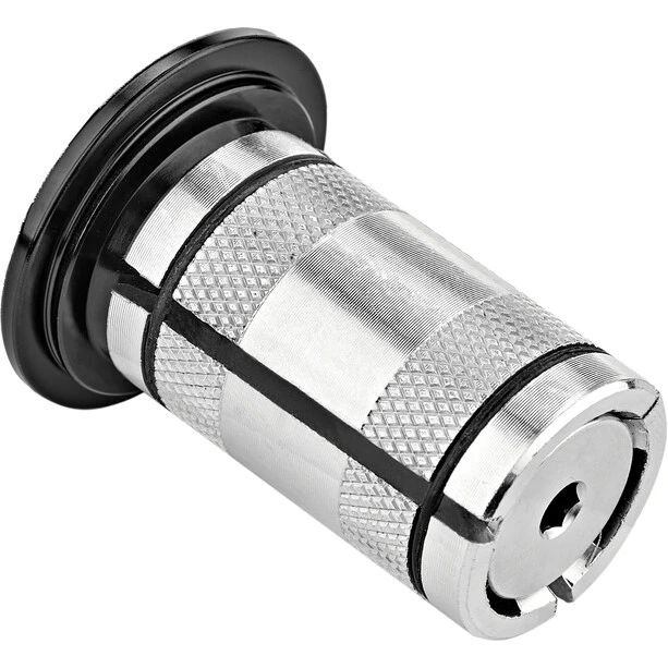 Capuchon de tête avec expandeur pour la précontrainte du jeu de direction sur les arbres sensibles en aluminium et en carbone. L’extenseur réutilisable est utilisé à la place d’une griffe Ahead. Pour les arbres de fourche en carbone, il faut toujours utiliser un expanseur au lieu d’une griffe afin de ne pas endommager les fibres de carbone.
